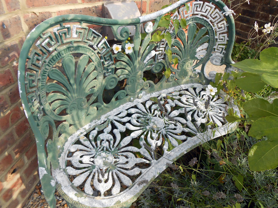 As you can see, I’m into the colour green this week and wondered if the person who painted the telephone box (see yesterday’s post) could lend me some paint to  restore my distressed wrought iron garden bench to its former glory.
