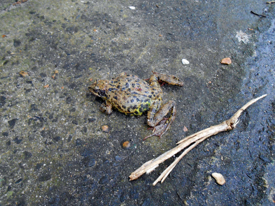 He is indeed, if he is a male. Since I took this photo, I wondered if this was a female frog in search of a pond to lay her eggs in, as it’s the right season for this.