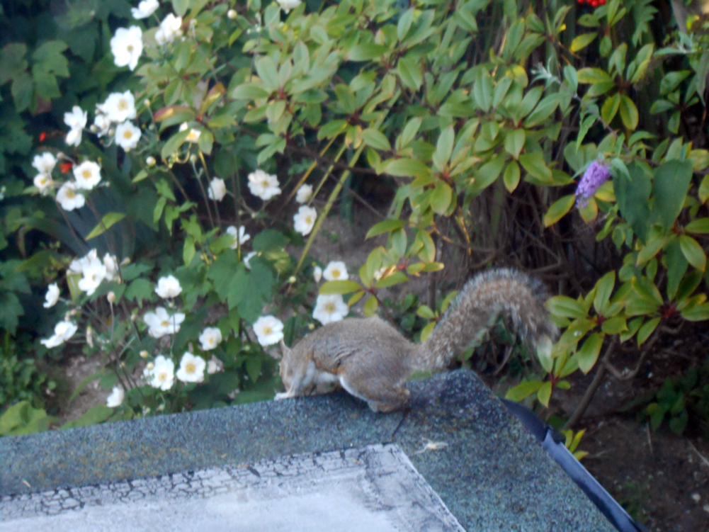 1. I tried to capture a shot of Mrs Squirrel sitting up on her haunches and displaying her apron in all its splendour, but she was far too busy scurrying about this morning on the flat roof outside my bedroom window to stay put in that pose whilst, blurry-eyed, I rummaged for my camera.